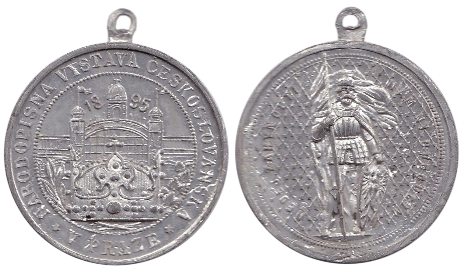 Praha, Národní výstava českoslovanská v Praze 1895, Sn 31mm původní ouško, av: průčelí výstaviště, dole královská koruna, rv: sv.Václav, nep.škr., nep.hr.