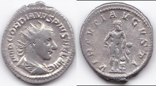 antoninian, rv: stojící Herkules doprava, VIRTVTI AVGVSTI, RIC 95