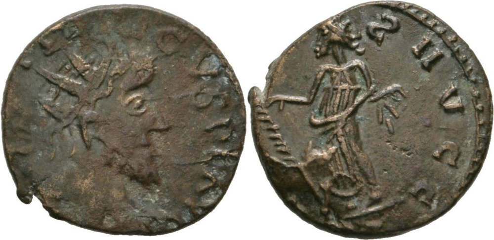 AE antoninian, barbarská napodobenina, Gallie 3.-6.stol.