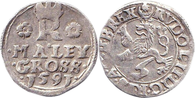 malý groš 1591 Jáchymov-Hofmann, HN 8b, opis 7c
