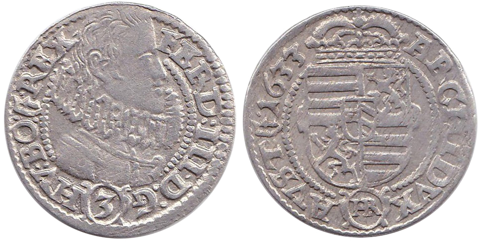 3 krejcar 1633 Kladsko-Rossner, MKČ 1335