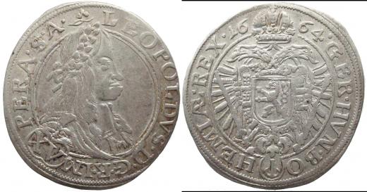 XV krejcar 1664 Praha-Margalík, MKČ 1408, Höllhuber 64.3.2, nad hlavou kytička