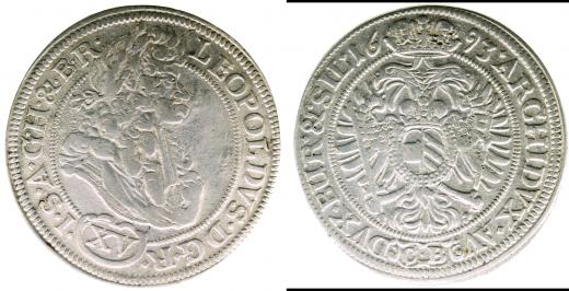 XV krejcar 1693 CB, Břeh-Brettschneider,MKČ-1696