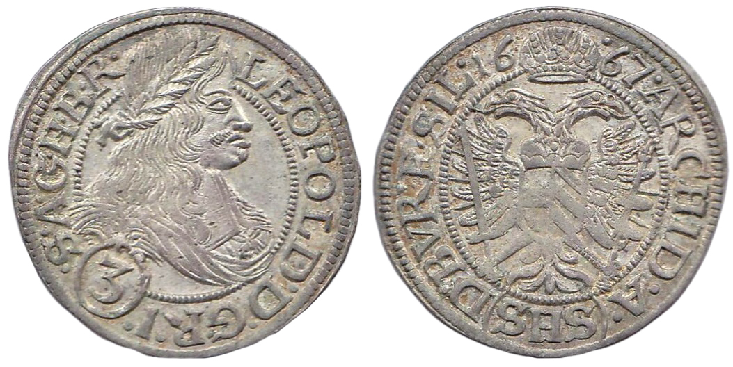 3 krejcar 1667 SHS Vratislav-Hammerschmidt, KMČ 1619, tém.