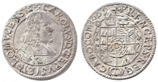 3 krejcar 1669, 1,7g, SV-322 E2/B5