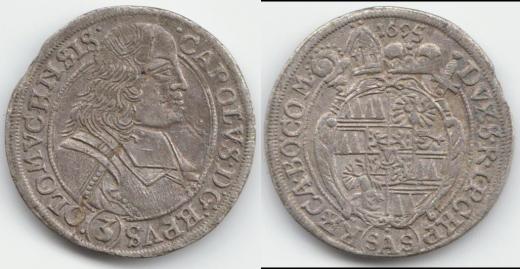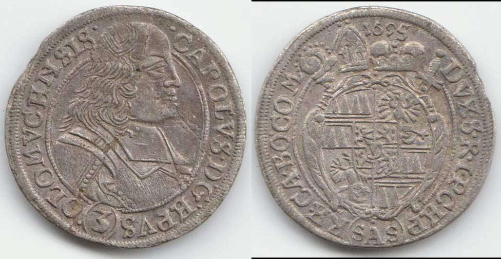3 krejcar 1695 SAS, SV-332, dr.škr., patina