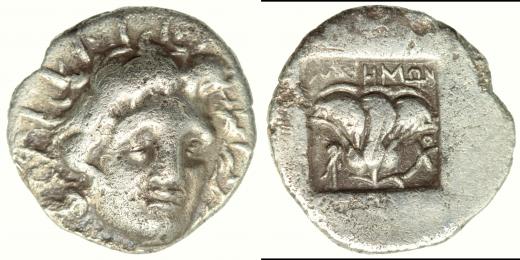 AR hemidrachma, hl.Helia/růže-opis, Sear-5065