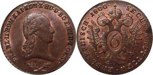6 krejcar 1800 F, Hall, pěkná patina, R