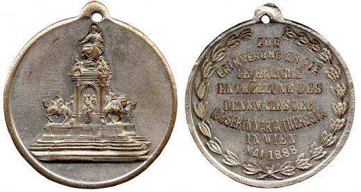 AE Medaile 1888 (Müller) - na památku oslav odhalení pomníku Marie Terezie ve Vídni, postř., 34 mm, pův. ouško