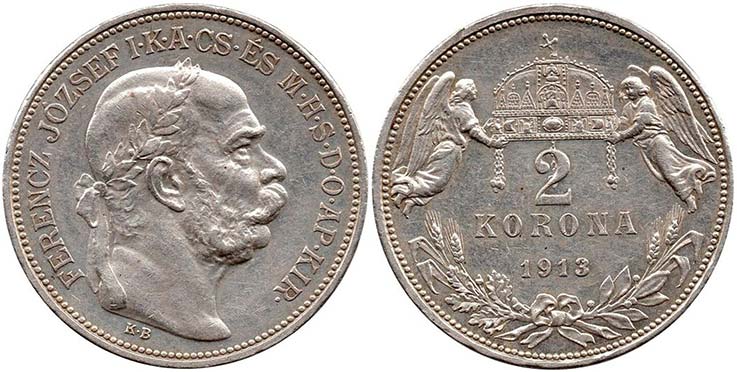2 kor. 1913 KB, nep.škr.