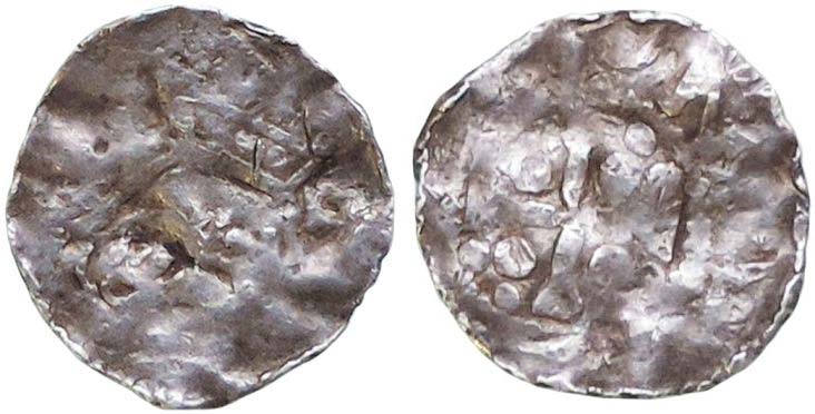 denár z první pol. 11.století, typ Lupowo, Fiala: Münzen und Medaillen welfischen Lande, napodobenina kříž s kuličkami/hlava císaře, 0,959g/17mm R