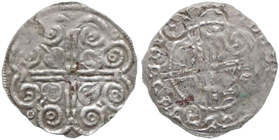 široký fenik typu Ladná, mincovna Neunkirchen ? Podivín ? rv: dva andělé drží kříž, RV 6.1, Löschl 45, nedor., 0,765g