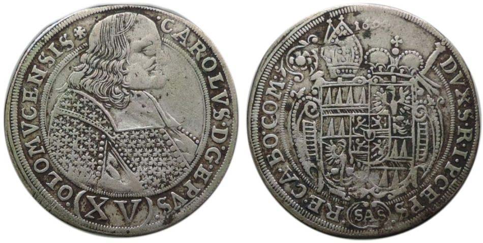 XV krejcar 1694 SAS, SV 390, Mayer 281, bohatě vyšívaný plášť, dr.ned.