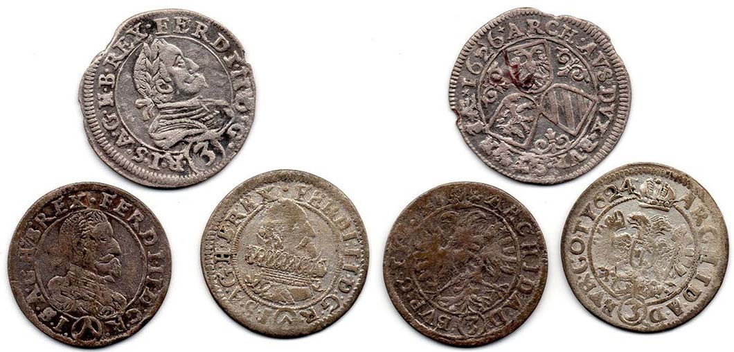 3 krejcar 1624, 1626 oba Vídeň, 1626 Graz, 3 ks