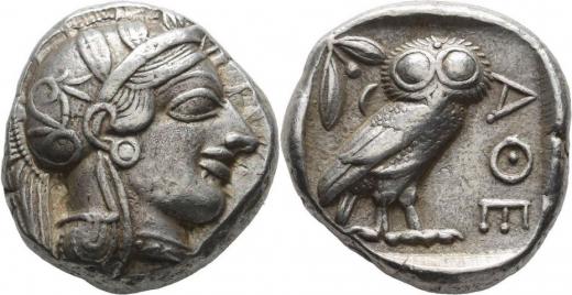 tetradrachma, hlava Pallas Atheny zprava/sova, 17,173g/22,5x23,5mm, SG 2526, nep.ned., nep.napr.okr. 1/1
