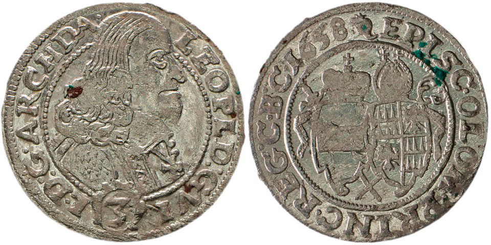 OLOMOUC BISKUPSTVÍ 3 krejcar 1658 Kroměříž-Huser, SV 130, úhoř s korunou, dr.stopy kor. tém. 0/0