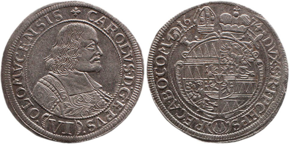 OLOMOUC BISKUPSTVÍ VI krejcar 1674, SV 343 zdobený plášť R tém. 0/0