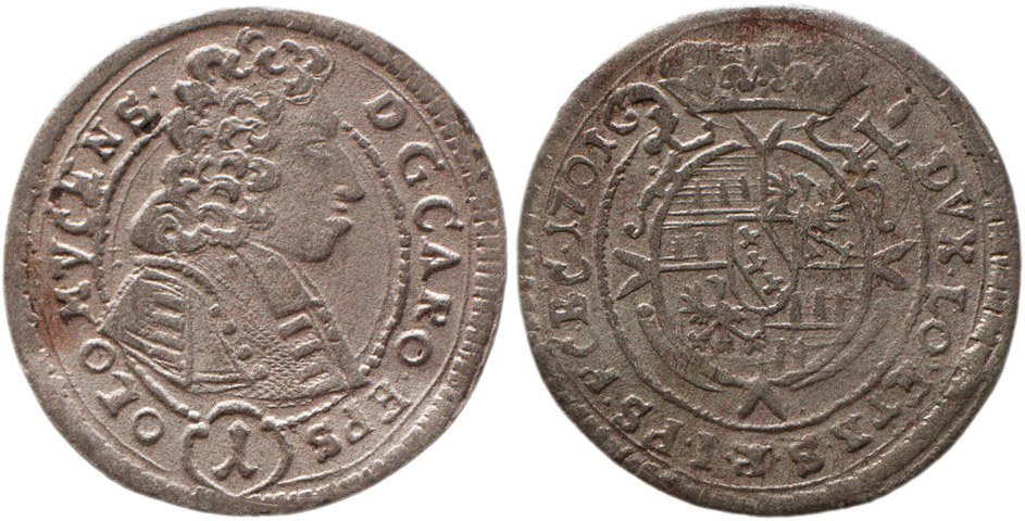 OLOMOUC BISKUPSTVÍ 1 krejcar 1701, SV 501 A4/A2 0/1