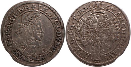 XV krejcar 1664 Neuburg am Inn-Triangel, Höllhuber 64.1.16, nep.škr., nep.kraj.stř., dr.škr. 1/1