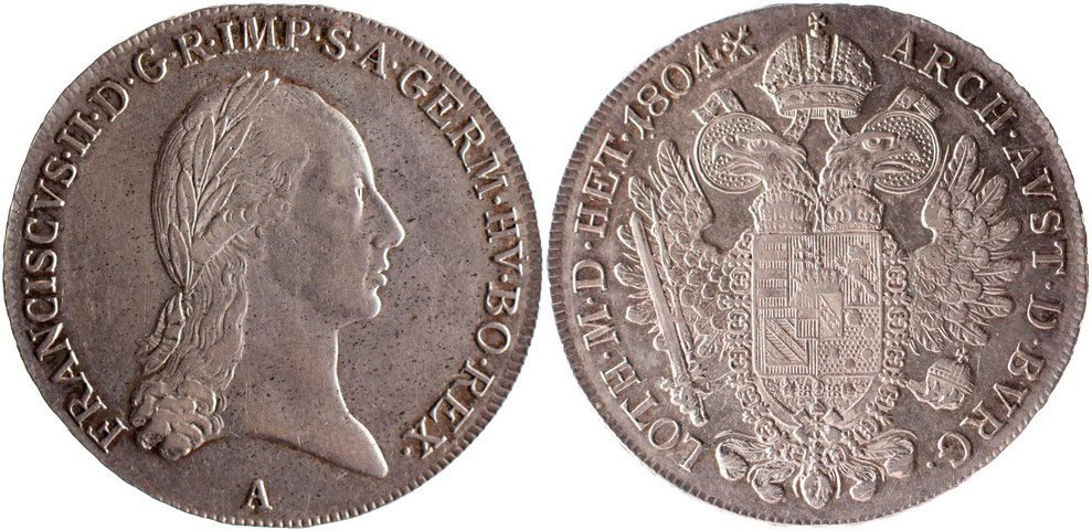 1/2 tolar 1804 A, dr.pórovitý avers, 14,003g RR 1/0