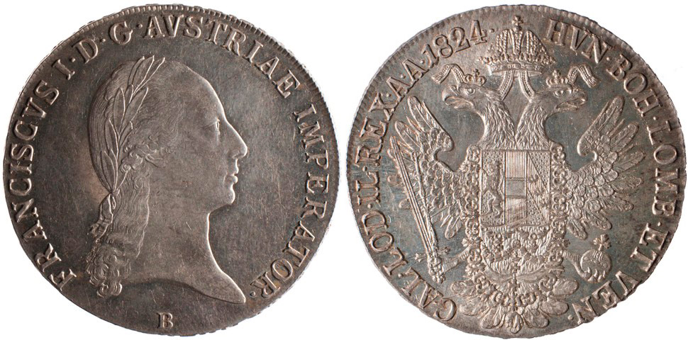 Uhry tolar 1824 B, vlas.škr. 1/0