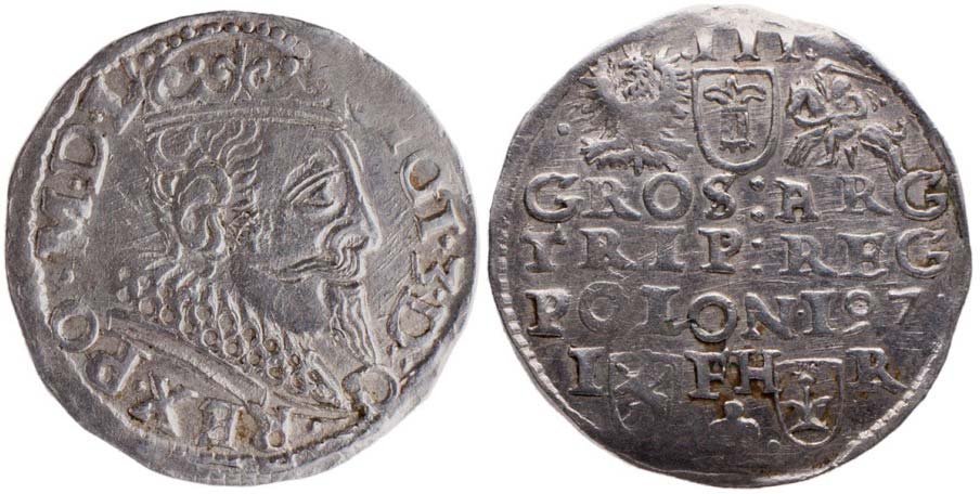 III groš 1597 Poznaň, Kopicki 1059 var., nep.hr., nep.ned.