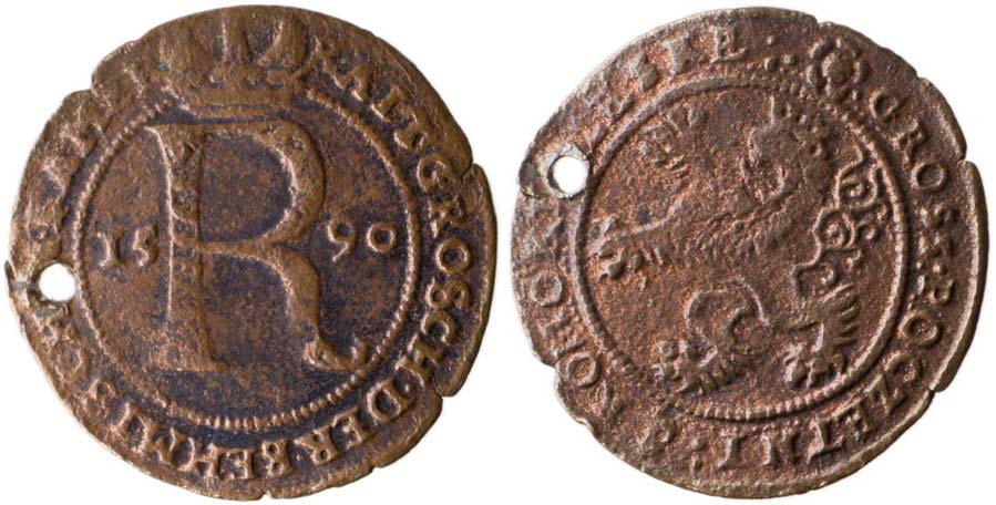 početní groš 1590 Praha-Ercker, Mrštík 42, dírka