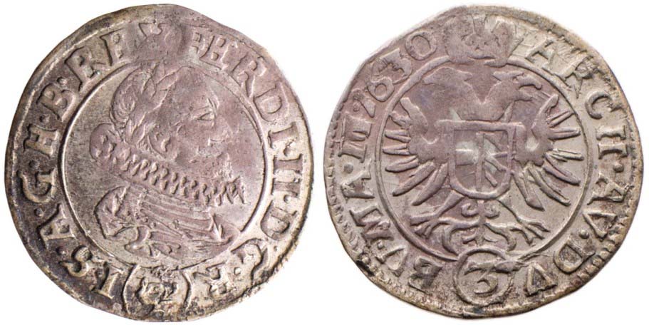 3 krejcar 1630 Praha-du Bois, MKČ 761, nep.ned.