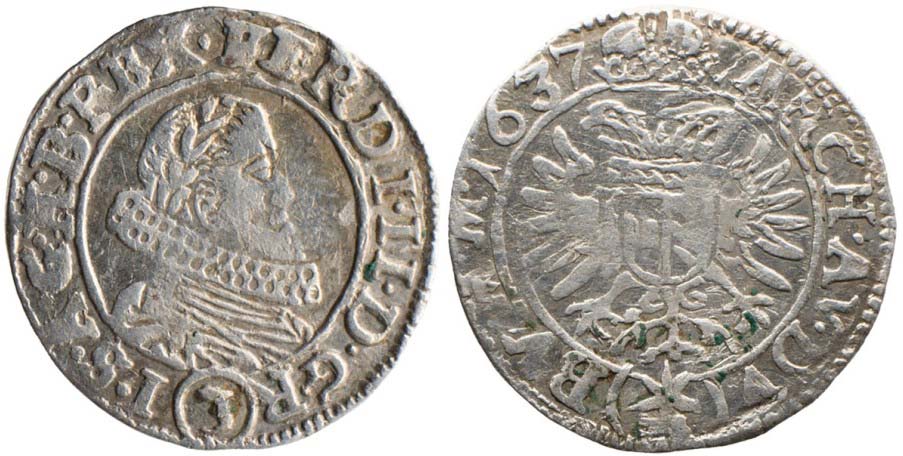 3 krejcar 1637 Praha-Wolker, MKČ 763