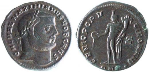 follis, rv: GENIO POPVLI ROMANI, minc. Antiochia