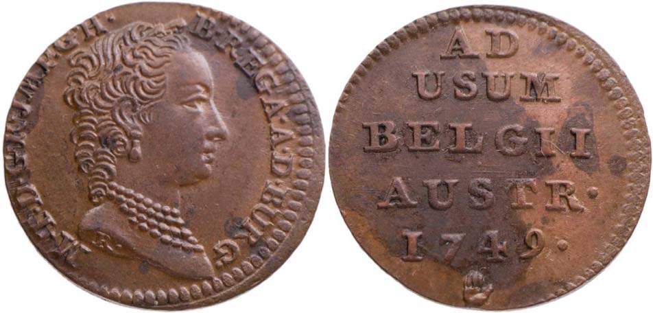 liard 1749 Antverpy, skvrnky, patina, nep.exc. R