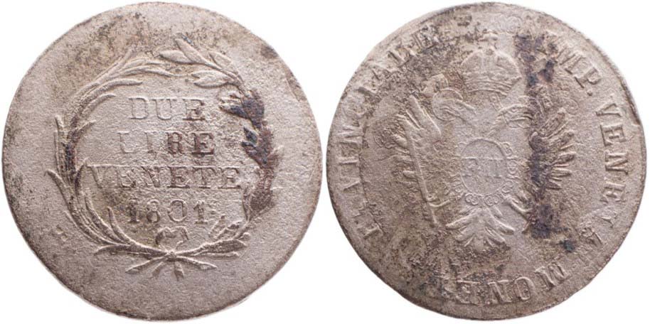 Due Lire Venete 1801, kor.skvrny, dr.hr. R