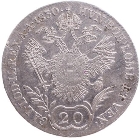 20 krejcar 1830 B nebo E, úhoz v místě značky, dr.just.