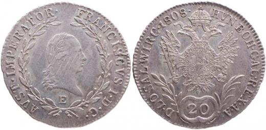 20 krejcar 1808 E, zc.nep.škr.