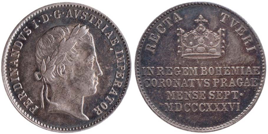 větší žeton na korunovaci v Praze 1836, 5.48g, 20,5 mm, patina