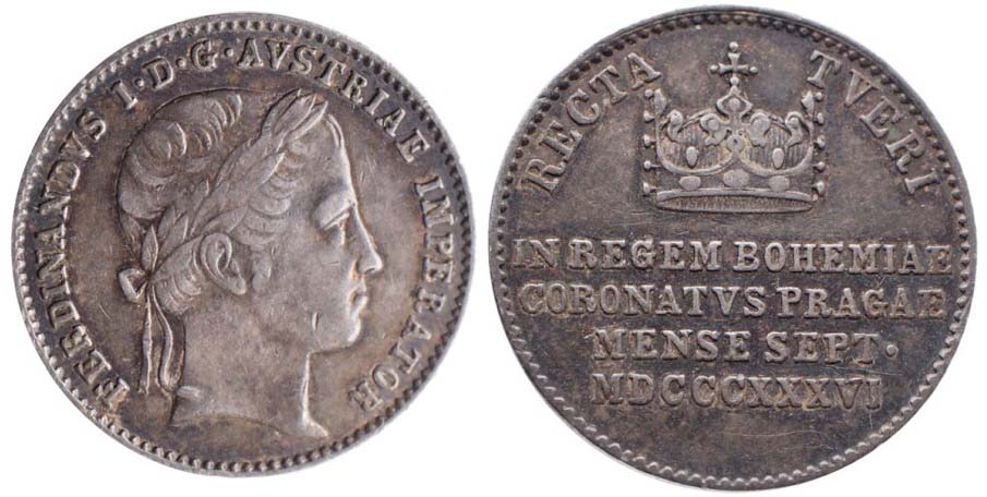 menší žeton na korunovaci v Praze 1836, 3.27g, 18 mm, patina