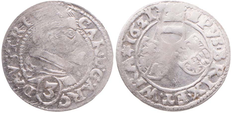 3 krejcar 1621, zn.hvězda v opise, Kopicki 6803, dr.prohn., ned. R