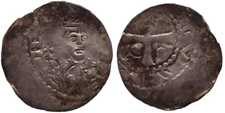 denár poprsí panovníka čelně/kříž, 0,775g/19,3mm mincovna Worms, Kluge 145, nedor., exc., patina