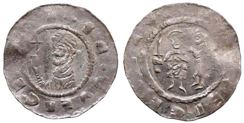 denár Cach -, VP 184, SC.VVENCEZLAVS/SC.VVENCEZLAVS, kníže s mečem a stojící postava/poprsí s křížem, exemplář vyobrazený v knize, 0,469g RR