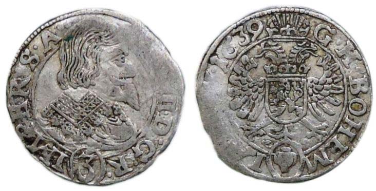 3 krejcar 1639 Jáchymov-Knobloch, nep.ned., MKČ 1218