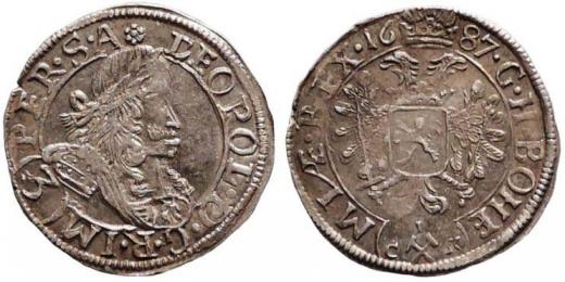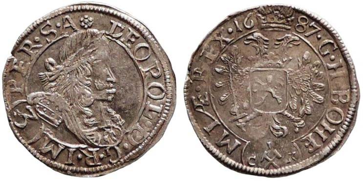 3 krejcar 1687 CIK Kutná Hora-Krahe, MKČ 1455