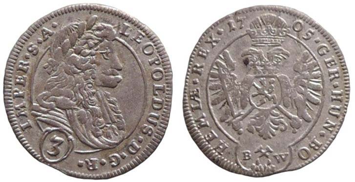 3 krejcar 1688 CIK Kutná Hora-Krahe, MKČ 1455