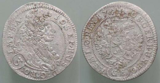 3 krejcar 1708 Praha-Egerer, MKČ 1721