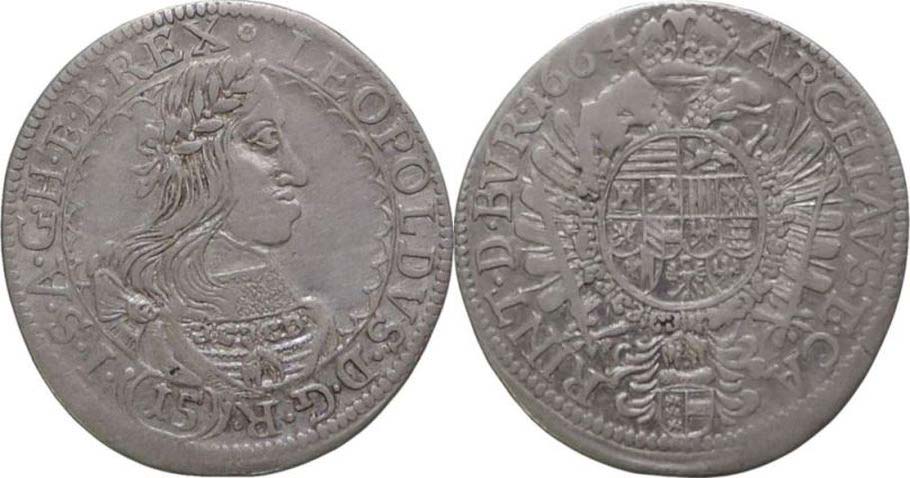 15 krejcar 1664 Sv.Vít, Höllhuber 64.1.1, nep.ned., R