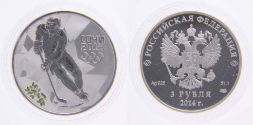 3 Rubl 2014 ZOH Soči Hokej, Ag 925 31,1g/39mm, etue, certifikát