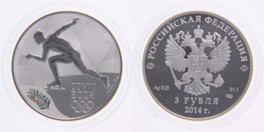 3 Rubl 2014 ZOH Soči Rychlobruslení, Ag 925 31,1g/39mm, etue, certifikát