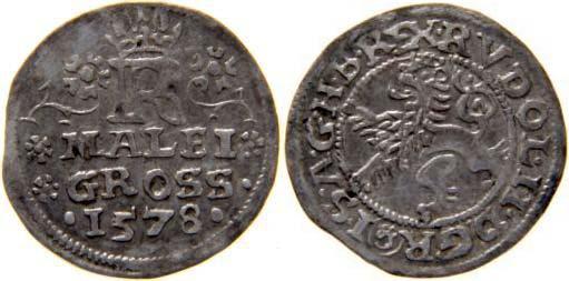 malý groš 1578 Č.Budějovice-Gebhart, HN.3a (opis 7c), nápis * MALEI */* GROSS ./. 1578 .", nep.hr., RR