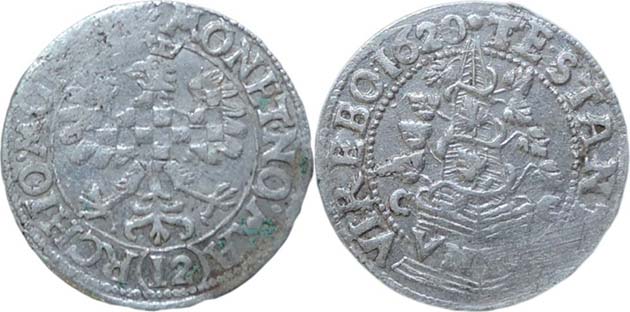 12 krejcar 1620 CC Olomouc-Cantor, MKČ 618, nedor., stopy kor.