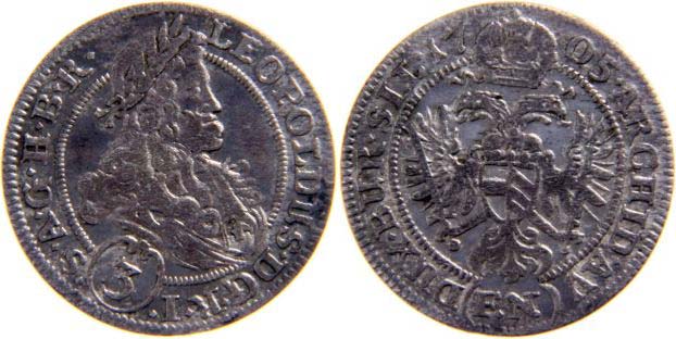 3 krejcar 1705 FN Vratislav-Nowak, MKČ -, opis DUX.BUR.SIL