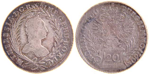 20 krejcar 1760 Praha-Erdmann, Herinek 926, pěkná patina